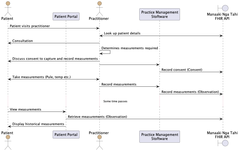 Patient remote capture Observation data may be captured by the patient themselves, and submitted to HNZ directly through a patient experience. In such cases, the FHIR Observation resources will be created by the MyHealthRecord app.